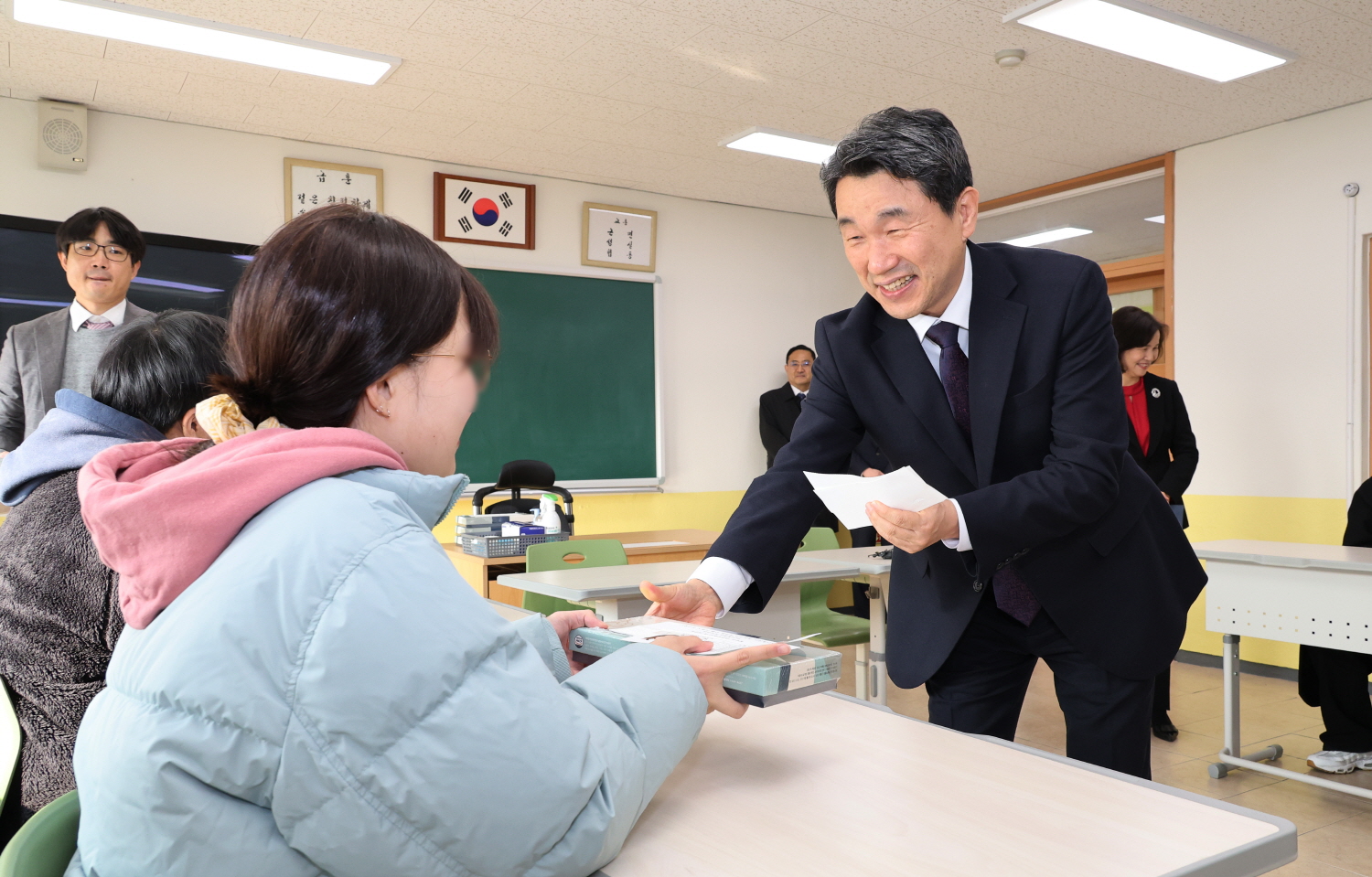 이주호 부총리 겸 교육부장관은 2024학년도 대학수학능력시험에 응시하는 장애 학생을 격려하기 위해 11월 15(수), 서울맹학교를 방문했다. 이번 수능에 지원한 장애 학생은 총 433명으로, 이 중 서울맹학교에 재학 중인 학생은 총 4명이다. 이주호 부총리 겸 교육부장관은 이들 4명의 학생에게 직접 수험표와 격려품을 나눠주면서 응원했다. 수험생 격려 이후에는 중증 시각장애 수험생의 수능 시험장으로 활용되는 서울맹학교의 시험장 준비 상황을 점검했다.